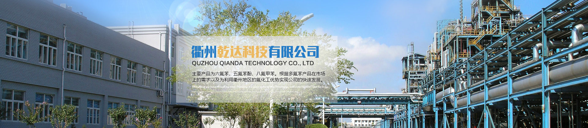 衢州乾達科技有限公司成立于2013年8月,注冊地浙江省衢州市柯城區(qū)華楓路16號,位于衢州市高新技術(shù)產(chǎn)業(yè)園。公司運用國內(nèi)首創(chuàng)工藝進行多氟苯及其衍生物的研發(fā)并實現(xiàn)了工業(yè)化量產(chǎn)。